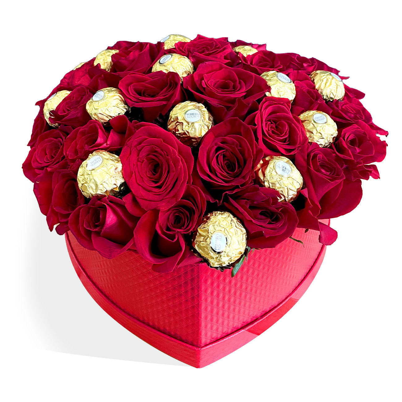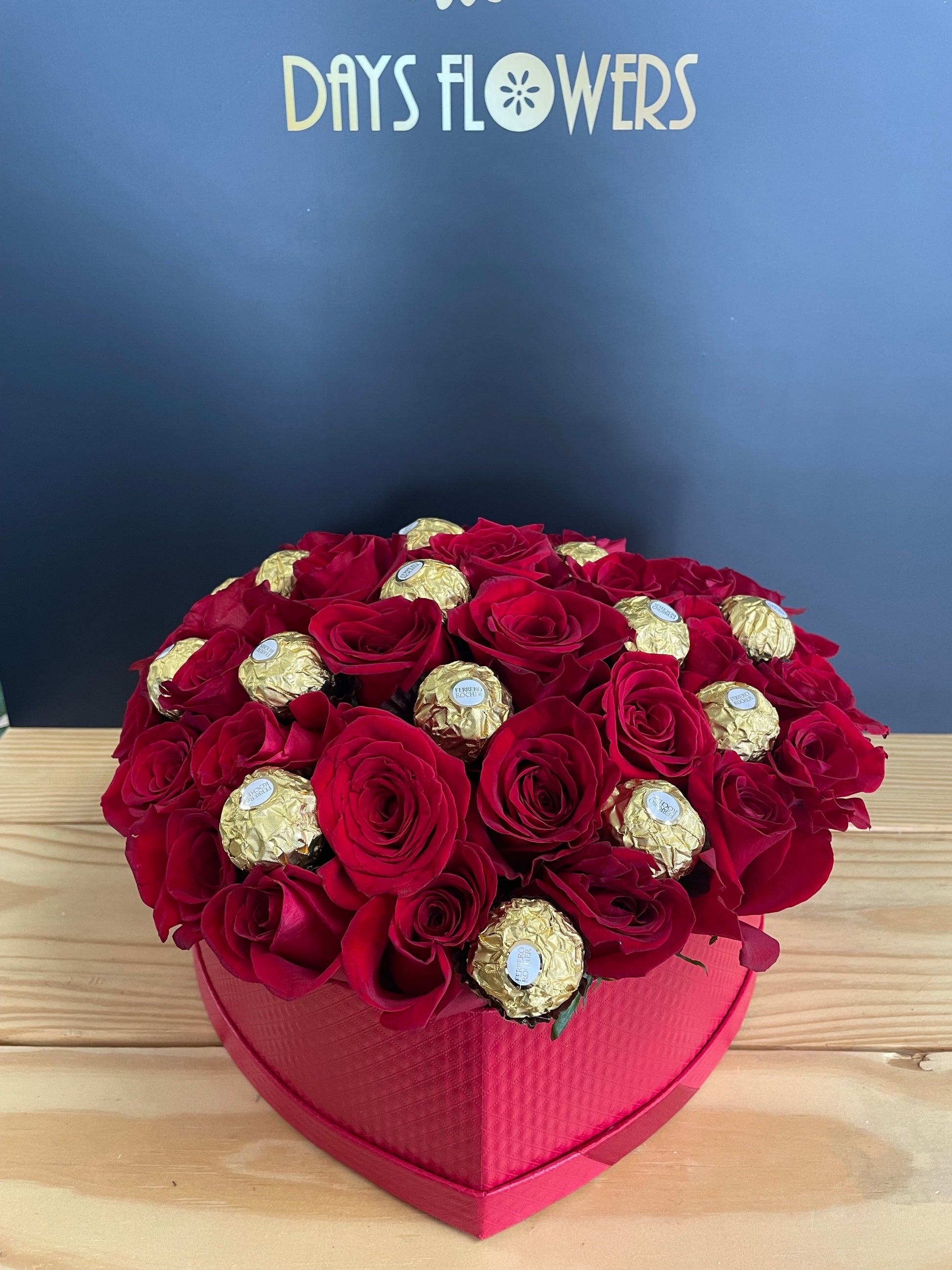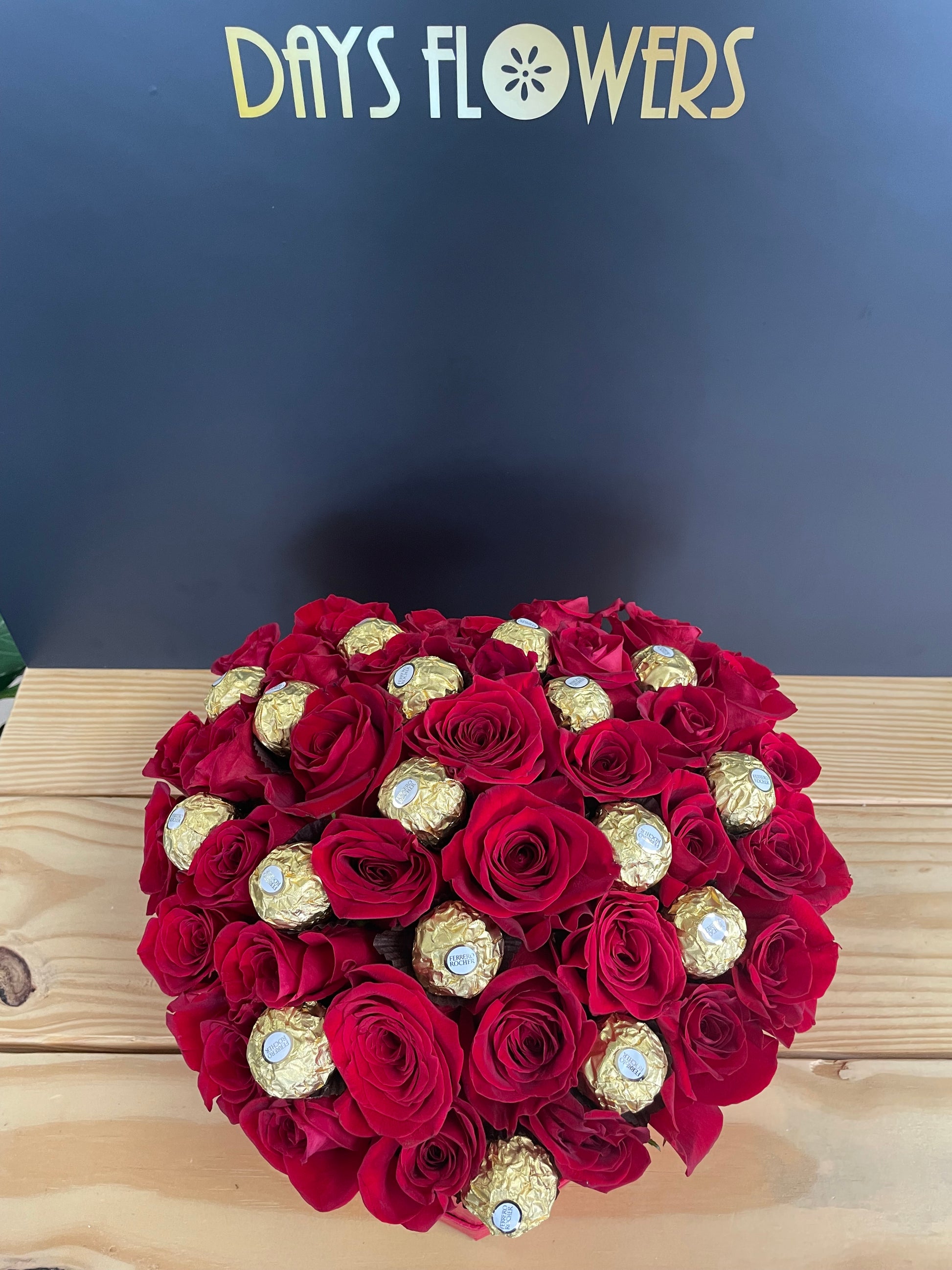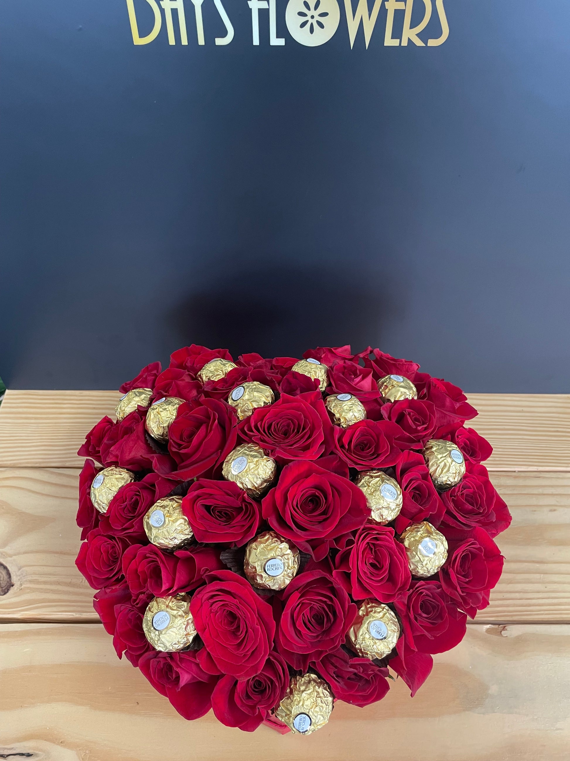 Surprise your sweetheart with this amazing gift box that contains 30 red roses and Ferrero Rocher chocolates. This is the ultimate expression of love and romance, as the roses symbolize passion and the chocolates are a treat for the senses. Whether it’s for an anniversary, a birthday, or just because, this gift box will make your partner feel special and appreciated.