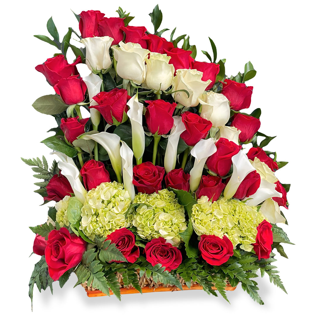 Indulge in the luxurious blend of nature’s beauty with our Ruby Embrace Floral Arrangement. This exquisite piece features a lavish selection of deep ruby red roses and crisp white lilies, artfully arranged amongst lush green hydrangeas. The vibrant contrast of colors is a true testament to the skilled craftsmanship that goes into each arrangement at Days Flowers Florida. Perfect for any occasion, this arrangement is sure to add a touch of elegance and sophistication to your space. Whether as a centerpiece for your next event or as a thoughtful gift, the Elegant Ruby and Emerald Floral Arrangement from Days Flowers Florida is an unforgettable display of floral artistry.
